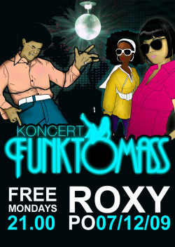 Funktomass, mistr funkových převleků, kliček a léček je opět tady. S jistotou víme, že své příznivce roztančí již 7.12. na Free Mondays v Roxy. Proslýchá se, že na tomto funky večírku s početným funkovým ansámblem, kterému velí dva rapeři a zezadu ho jistí skvělá dechová sekce, dojde k překvapivému odhalení. Funktomass ukáže svou pravou tvář. Slabší povahy prosíme, aby si ve svém zájmu připravili ochranné funkční brýle ve tvaru hvězdiček.